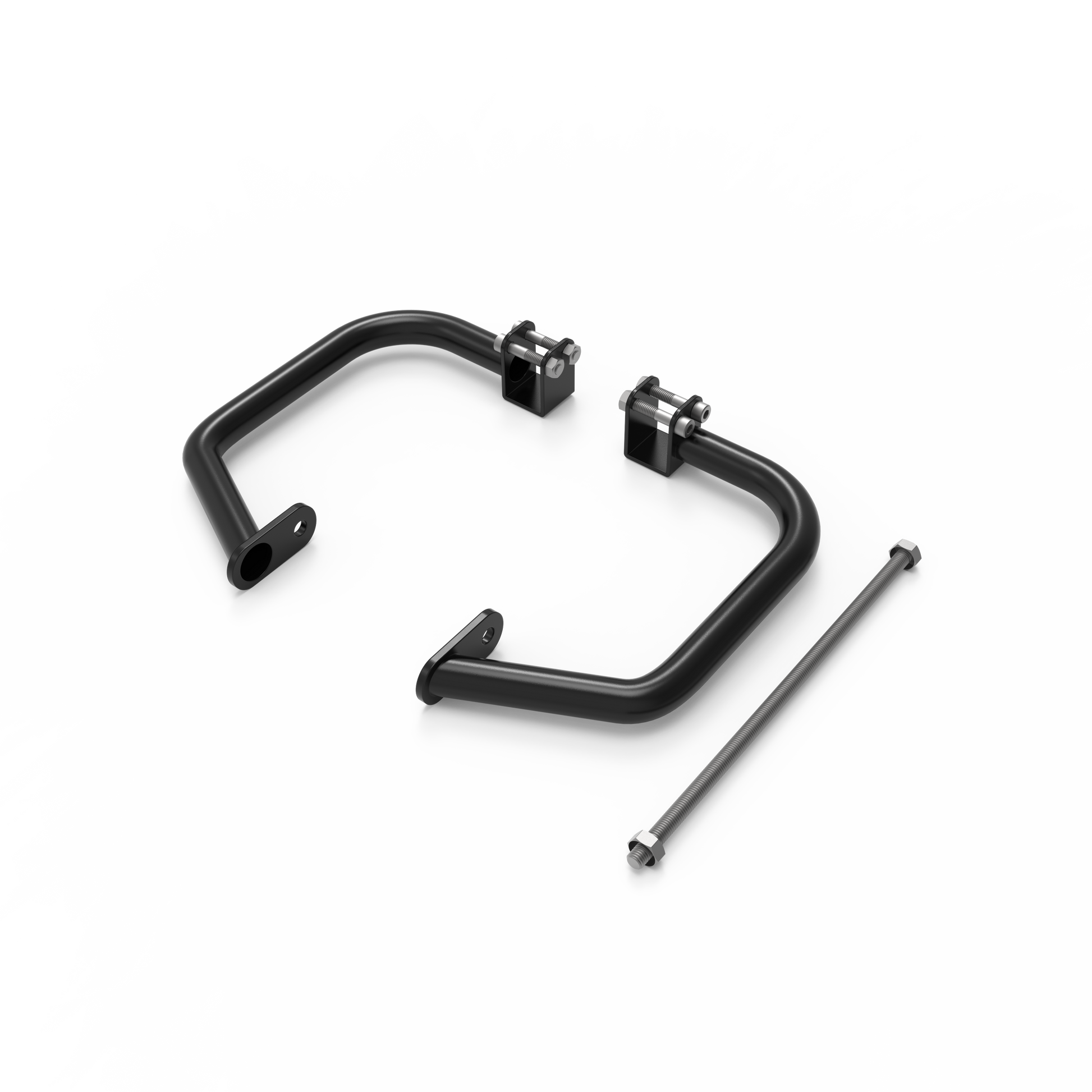 The protection bars for the CL 250 are made of hard pipe, resistant to falls, and coated with black powder paint. As they are custom-made to order, the production time is approximately 10 days. They come with all necessary mounting components and the plastic covers shown in the photo.
