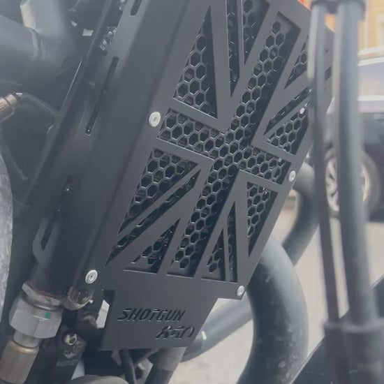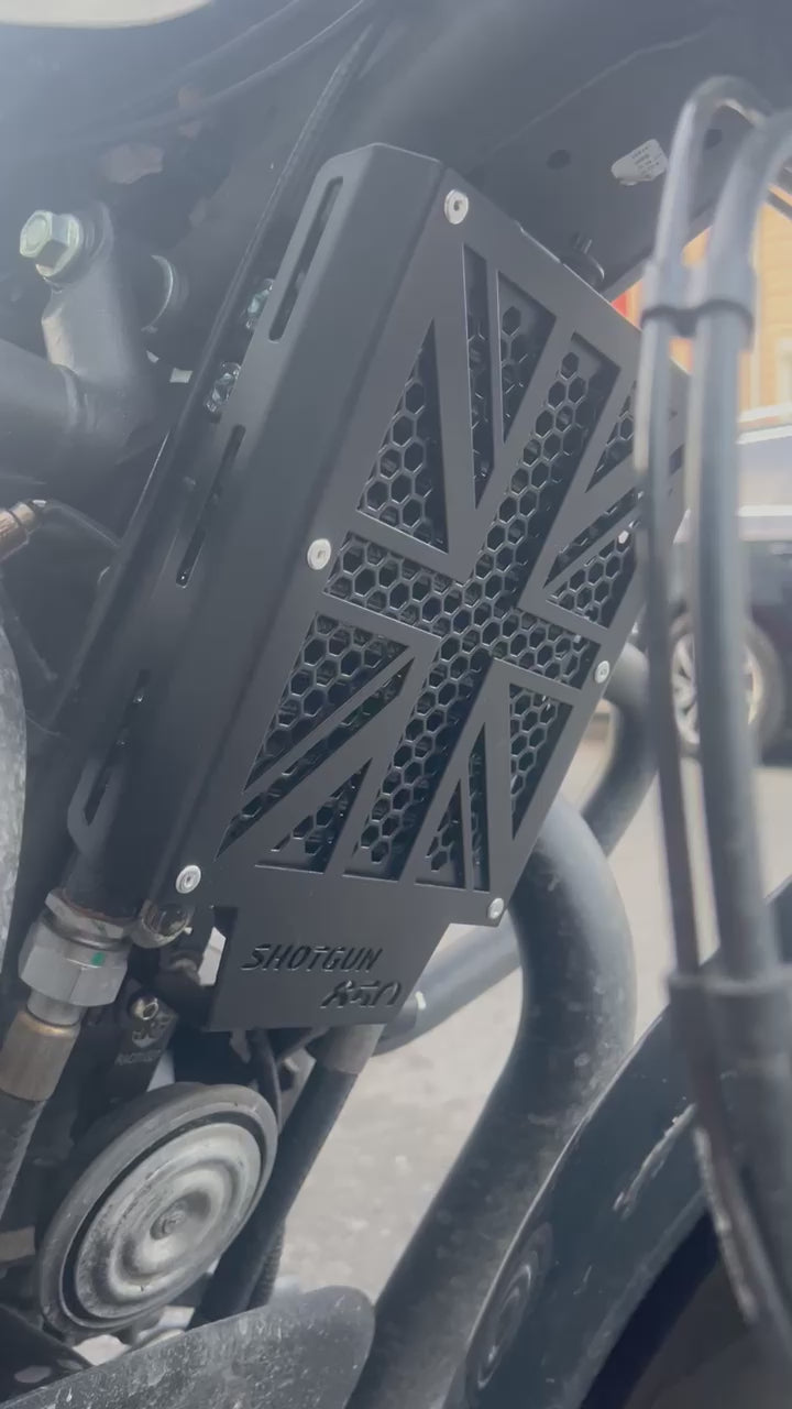 Radiator guard designed to protect your bike from stones, debris, and road impacts. CNC-cut for a precise fit and finished in a tough matte black powder coat for long-lasting corrosion resistance.